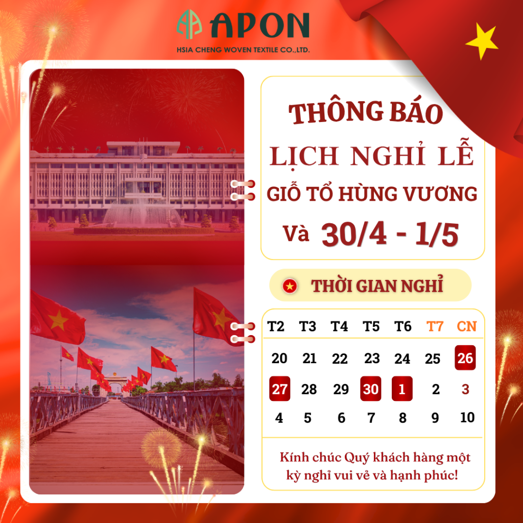 Công ty Hsia Cheng – Lưới APON xin trân trọng thông báo lịch nghỉ lễ như sau: